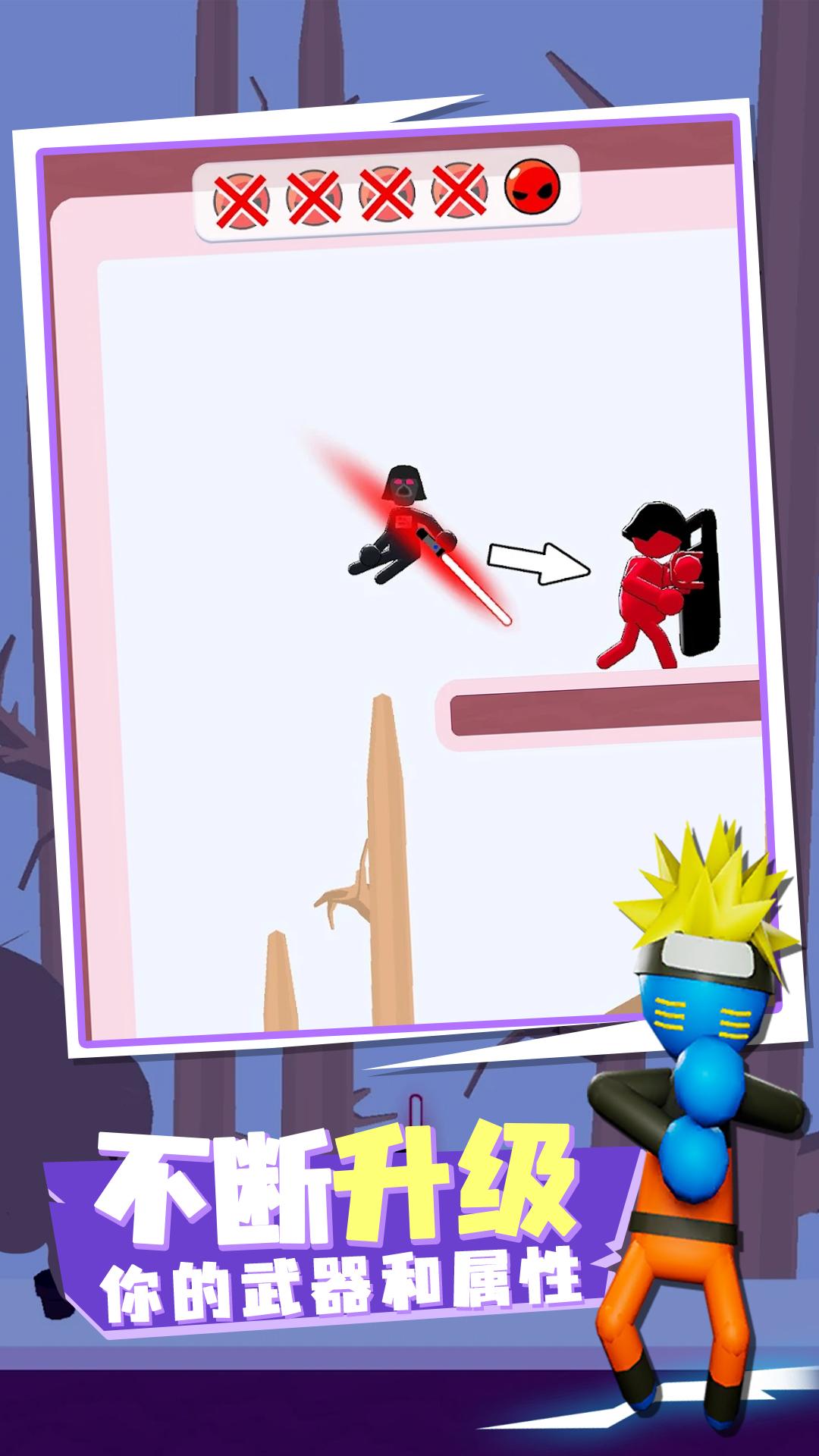 1、以经典的火柴人形象为主角而打造,控制里面的火柴人来不断的进行战斗。