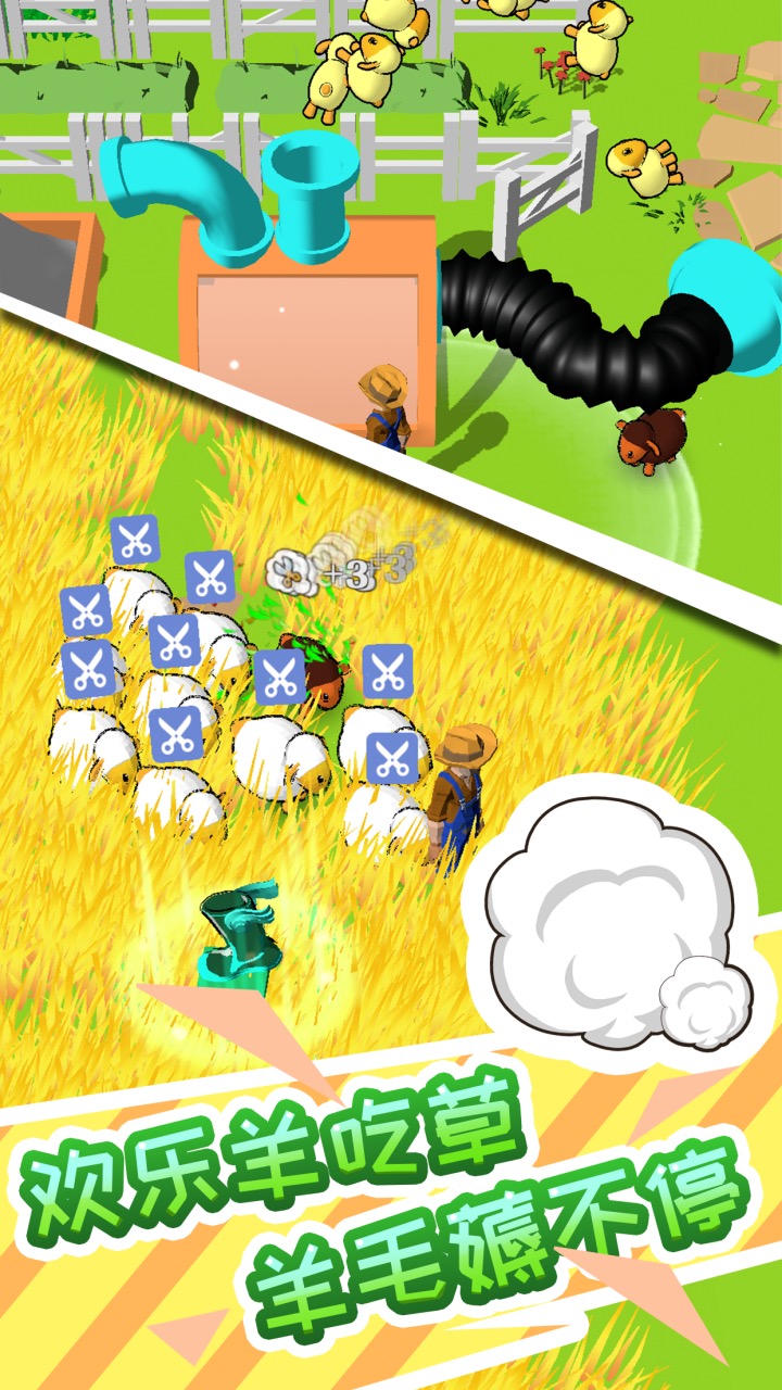 当你的羊变得无比丰满时,你就可以选择无情的把它们丢进自动剪毛机,收货大量的羊毛;自动化的生产流水线会帮你加工羊毛、生产商品、出售赚钱;你可以继续升级牧场或者开启更多品种的羊,最终成为牧场大亨,走向人生巅峰!