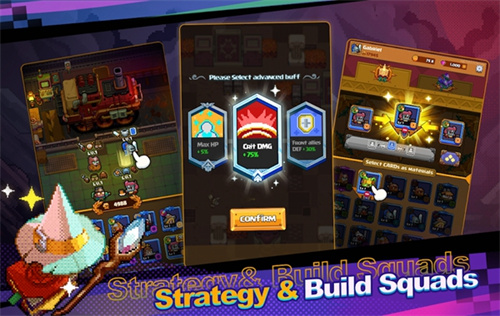 1、经典地下像素游戏玩法,新加入的自动攻击系统,一起快速消灭掉队列中的所有怪物。