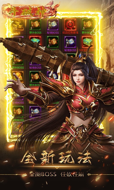 斗破神作为一款即时战斗类仙侠风格的游戏。各类仙器法宝多重变身,脚踩飞剑、背装绝美翅膀、怀抱绝世美人,手握无上神兵,灭天灭地灭鬼神!所有充值纯靠割草玩法产出,割草拿无限充值,无限元宝无限铜钱,并且激活大量活动!