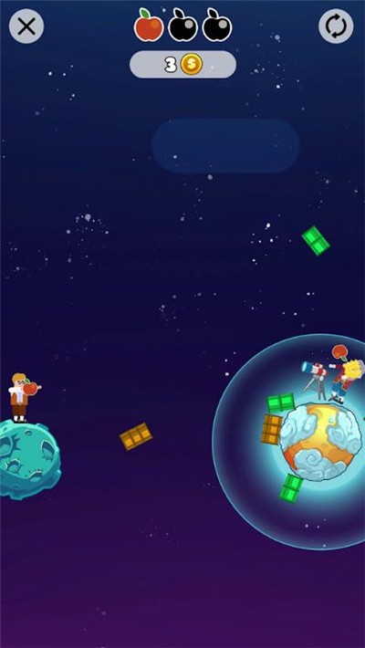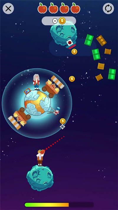 3、在苹果先生重力难题游戏控制手里的小人发送出让人惊艳的苹果,用苹果恰好砸中牛顿。