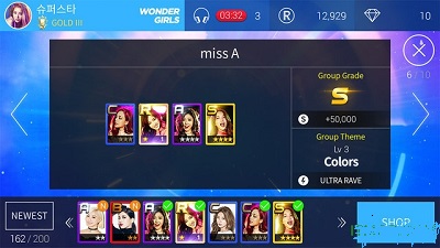4.每周的超级巨星评分挑战会随机展示JYP艺人的歌曲。为了获得更高的排名,你需要获得更多卡片。