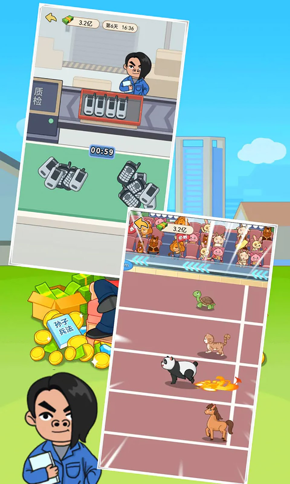 9豪门少年历险记男人奋斗逆袭游戏作为一款挂机的模拟游戏,在游戏里玩家可以扮演一名职场男性角色,在游戏里面展开一段个人逆袭之旅。游戏采用可爱的角色造型和画风,同时加入了模拟经营元素,向用户还原各种职场挑战和人生决策。
