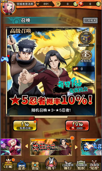 1、在村庄中招募和培养自己喜欢的忍者角色,提升他们的等级和能力;