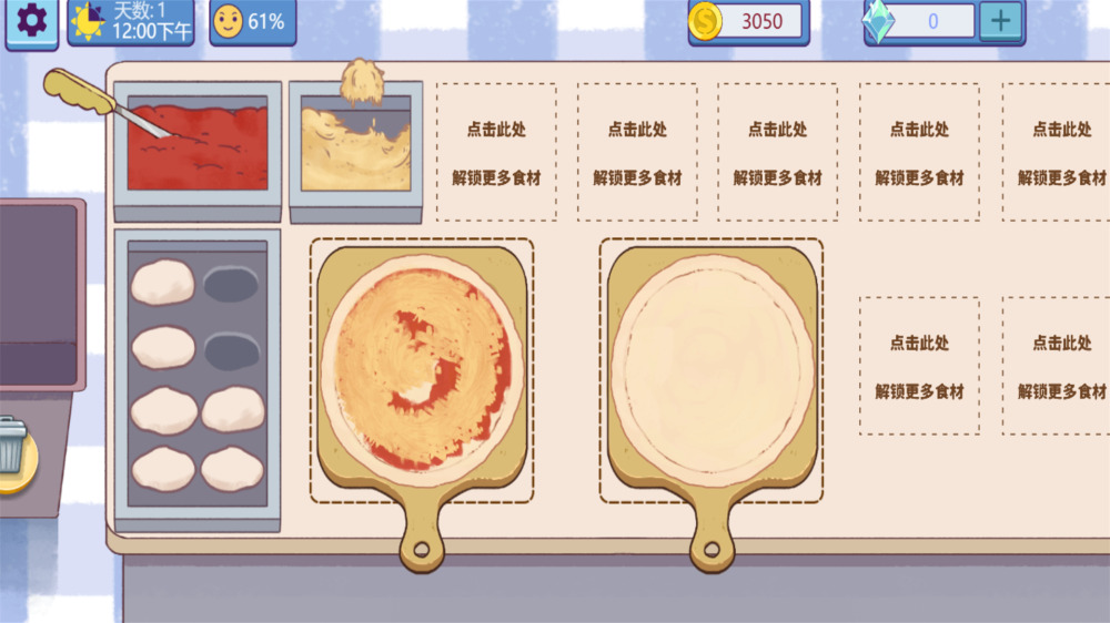 3.用户可以用一些食材做披萨,各种好吃的披萨等你来做。