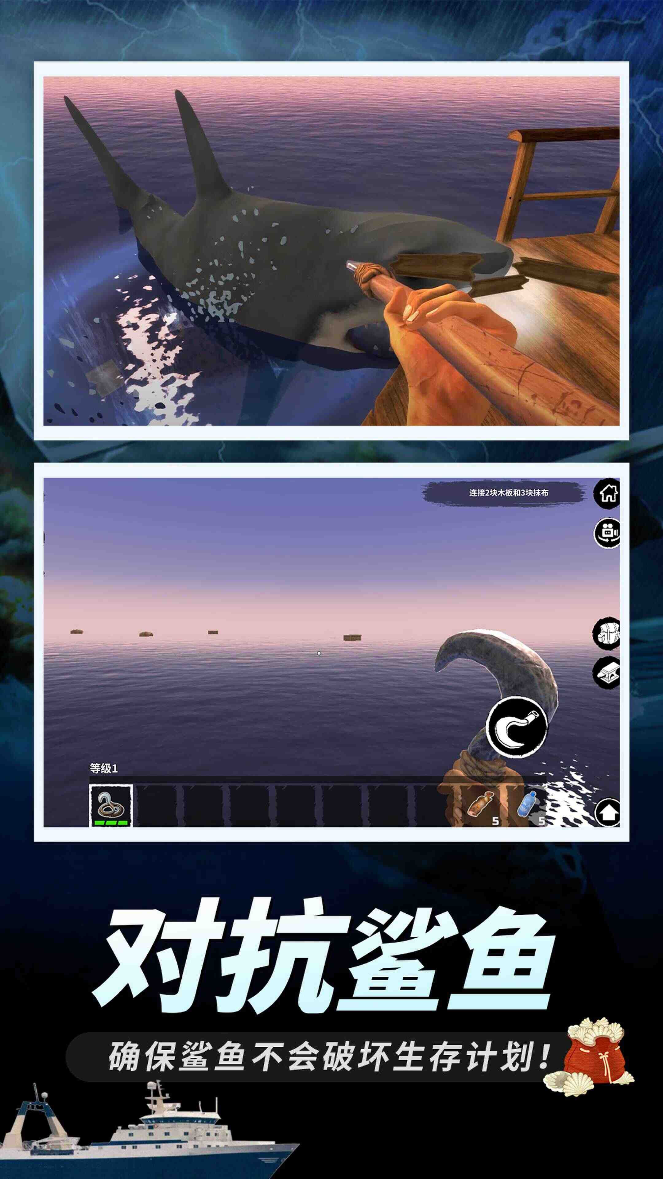 2、建立安全的住所,对抗强大的鲨鱼,迎接一系列的危机很紧张;