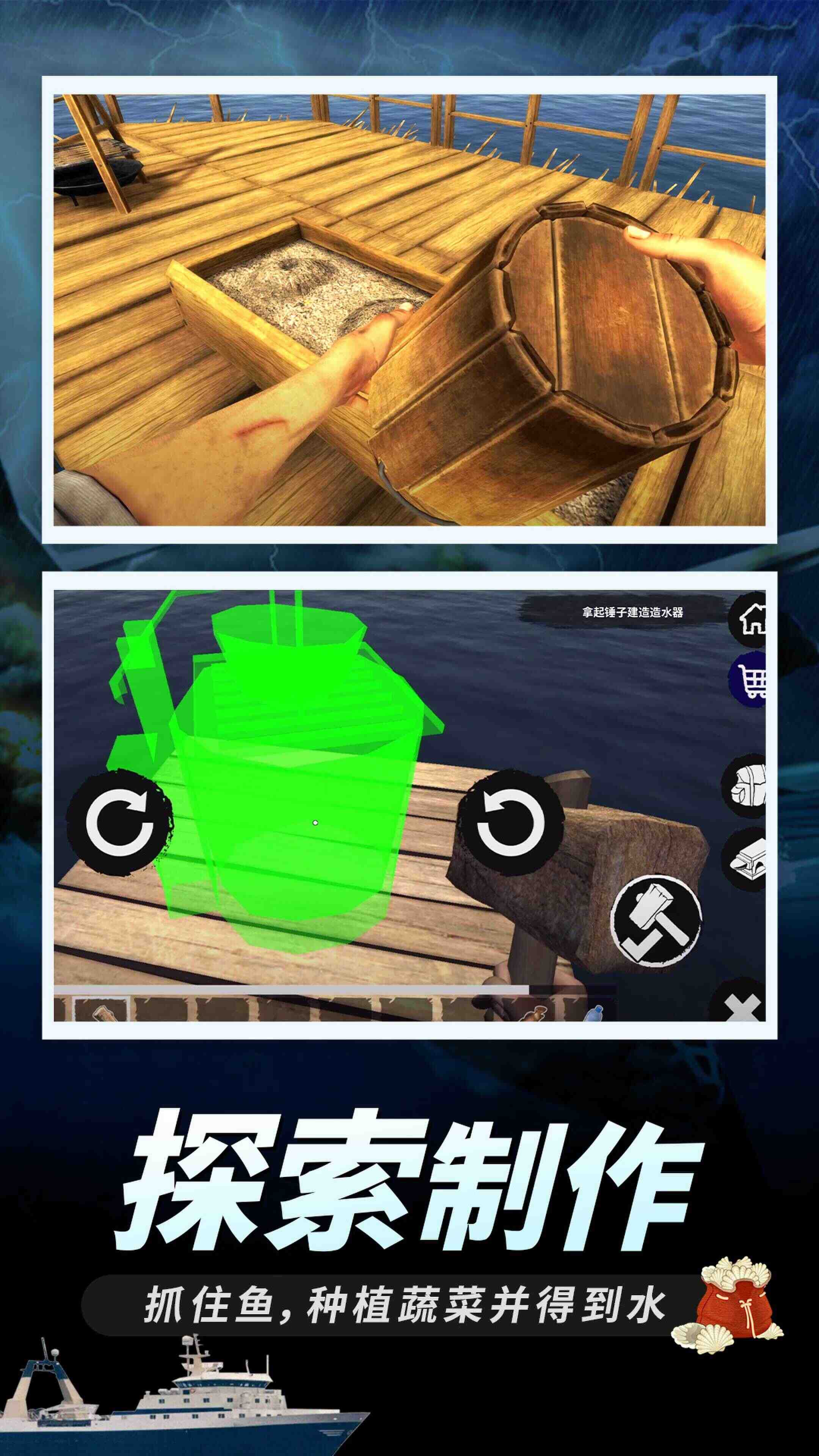 1、探索广阔无垠的海域,搜寻有用材料资源的同时还要躲避各式各样的危机考验;