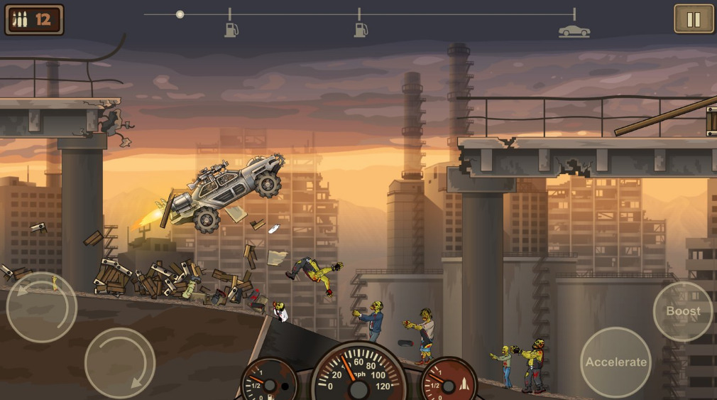 战车撞僵尸2是一款经典横版的射击竞速,这款游戏不仅拥有全新的游戏剧情,还能让你在这款游戏中享受到更加血腥的僵尸撞击快感!你在各种道路上面进行前进之时还需要考虑到来自你面前僵尸的存在,简单的玩法但是还算丰富的游戏内容,游戏共有 10 部汽车可供玩家解锁使用,不过游戏里的汽车是会损坏的。