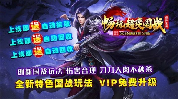 畅玩超变国战是一款brandnew国战玩法的熱血传奇类手游。ユニーク的沉默系统,让你可以轻松解锁海量顶尖装备武器,免费的福利、真充轻松领取,解锁畅玩超变国战中的精彩对战玩法,邀请好友一起加入跨服对战,体验不一样的传奇魅力。打造精彩的刷怪玩法,玩家们可以在沙巴克里尽情危険を冒す,解锁不一样的传奇挑战。