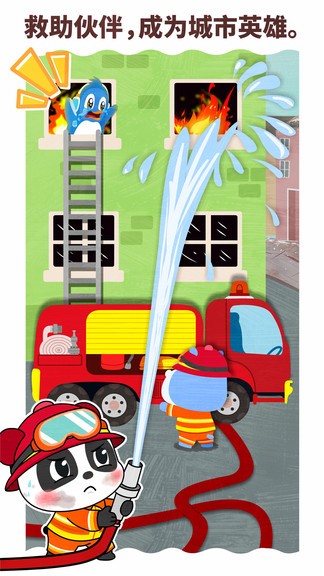 驾驶消防车,扑灭民宅大火,拯救被困在大楼高处的小伙伴;