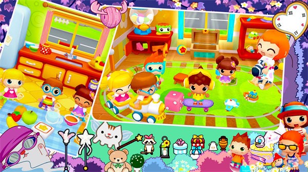 2.解锁出不同类型的玩具和家具,对房间进行全面布局。