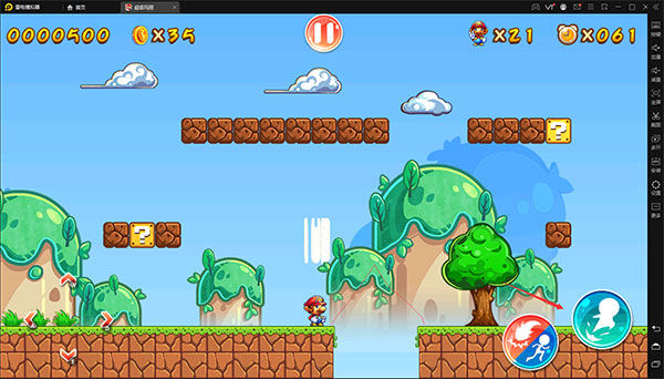 经典虚拟按键控制,通过控制猫里奥左右移动、跳动,可踩死路上的乌龟、蘑菇等小怪物,尽量多的搜集金币,到达终点跳上旗子,就可以顺利过关啦。
