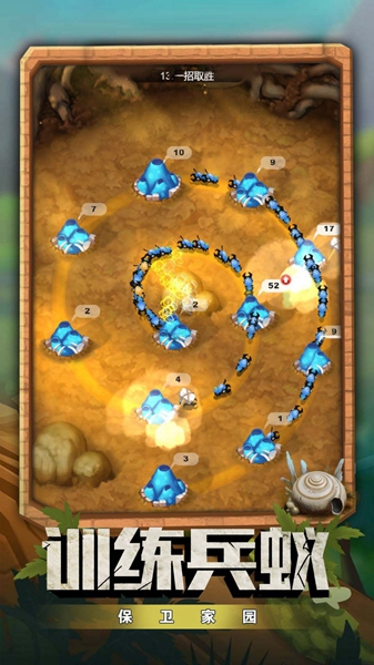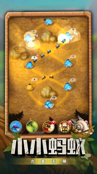蚁群的数量代表着蚂蚁家族的兴衰。为了蚂蚁国家的发展和荣耀,你必须尽可能地增加蚁群的数量,带领它们抵抗外敌,争夺资源,扩大它们的力量!
