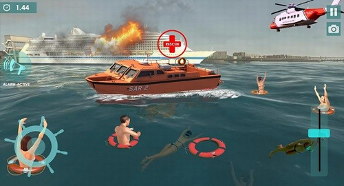 3、模拟水上救援的游戏应用,水路救援模拟器游戏中用户将乘坐快艇解救幸存者。