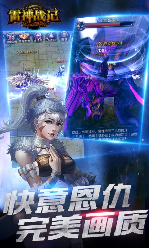 雷神战记作为一款以玄幻为题材的3DMMORPG手机网络游戏。在游戏里面,精心构建了一个神奇瑰丽的仙侠世界,让各位仙友能在方寸间,尽情感受真3D的极致画面。万人仙盟战、丰富多样的活动副本,跌宕起伏的故事、使玩家仿佛亲身经历一般,带给用户丰富而刺激的真实体验。这个夏天激情战斗,保卫人族免受魔族的侵害!