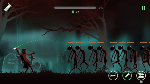 充满了趣味和挑战的休闲飞镖射击游戏,在游戏里玩家将使用注射器来消灭掉那些向你袭来的怪物,有效的打出连击能够增加一定的攻击力,刺激的游戏氛围,不择手段,游戏采用暗黑的画面场景设计打造而成,超多关卡等你来挑战。