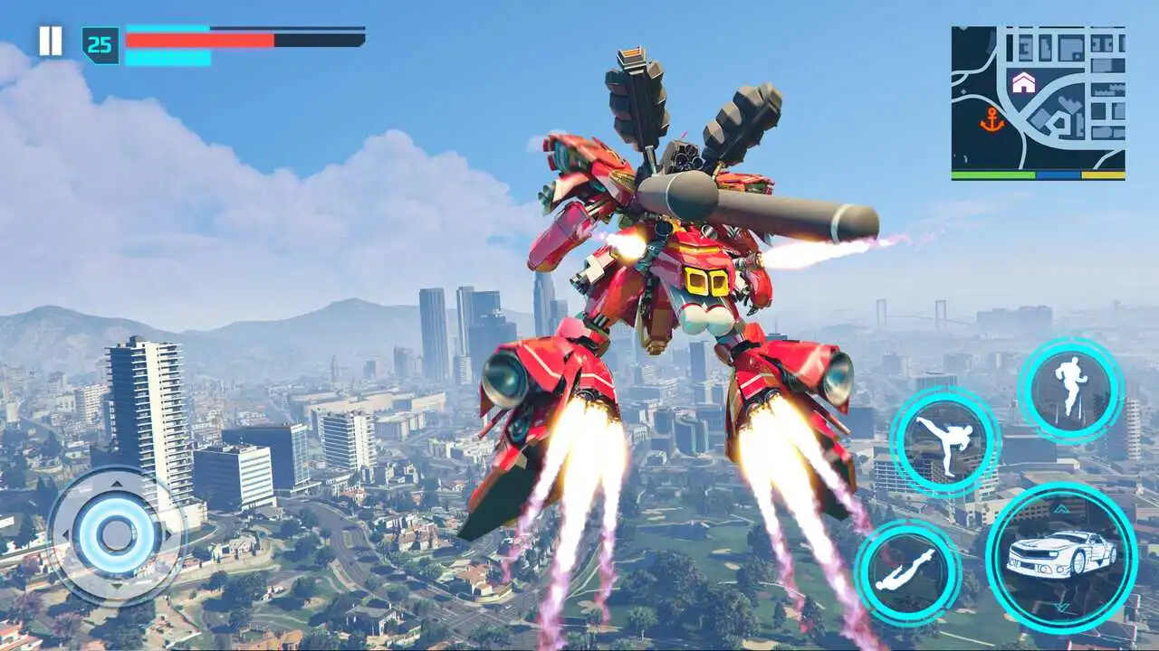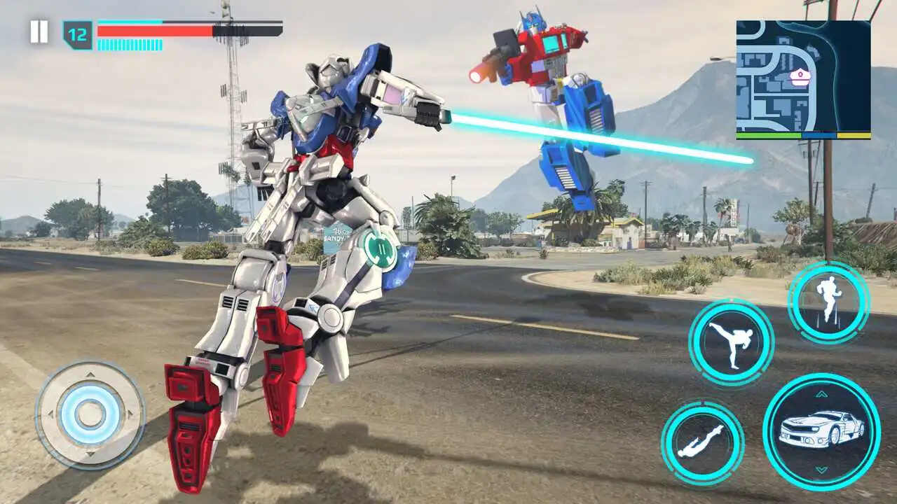 机器人变形金刚大战是可以让玩家通过操控机甲的方式完成各种动作的游戏,操控着变形金刚在一些城市道路上进行刺激的作战,与坏人们决斗的时候可以使用的能力有很多,不管是拳打脚踢还是利用特殊技能都可以完成挑战任务,在对战的时候还可以不断的升级角色能力,让战斗更激烈。
