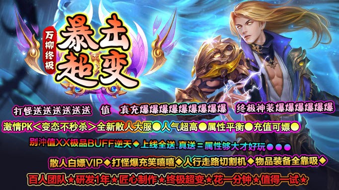 万柳终极暴击超变作为一款热血题材的复古传奇手游,复古的游戏画面,还原度非常的高,将我们带入到传奇的游戏世界中进行的探索,能灵活的控制游戏角色,随时加入到热血的对战中,尽情的PK,获取更多的战利品,快速的升级,提升实力。