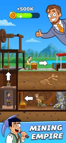 2、精美的游戏画面和音效让玩家沉浸在和出售黄金采矿帝国的运营过程中。
