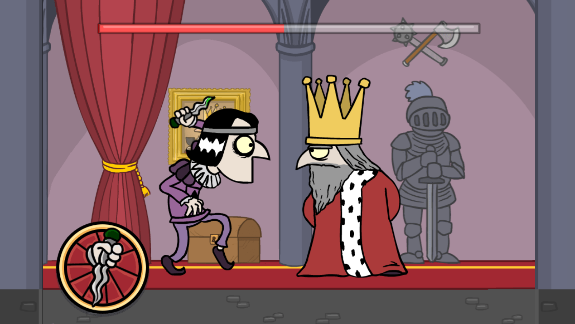 2、当角色走进国王时,长按屏幕,当上面的蓄力条满时,角色挥刀刺向国王,在蓄力期间,一旦发现国王有回头的动作,手指要赶紧离开屏幕,以防被抓