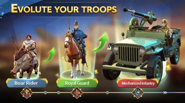 进化时代是一款文明模拟进化游戏,一起来进化并且提升你的文明,在这里不断的建设你的势力。游戏中开启战争对决,解锁不同的兵力和武器,让你的文明获得更多的助力和无限可能。来收集资源并且去占领brandnew的土地,快速的发展文明成为最强的势力。