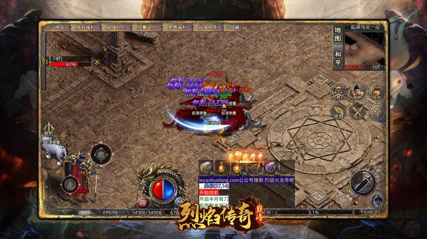 巅峰烈焰火龙是一款有趣的复古传奇游戏,画面轻盈,难度不高。成千上万的人在攻沙,勇敢的战斗,迎接竞争的挑战,面对更多的高手。敏捷的手速操作,震撼的战斗效果,非常激烈的战斗气氛,没有复杂的操作。