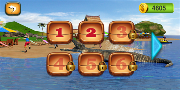 我们在游戏里面将会扮演一只可爱的鳄鱼,目的很简单,操作摇杆袭击在沙滩上玩耍的人类,用自己巨大的身躯和锋利的牙齿将Ta们全部给消灭干净吧。因为我们的水性很好,所以你得善用这方面的长处,尽可能的在血量见底之前袭击更多的人吧。