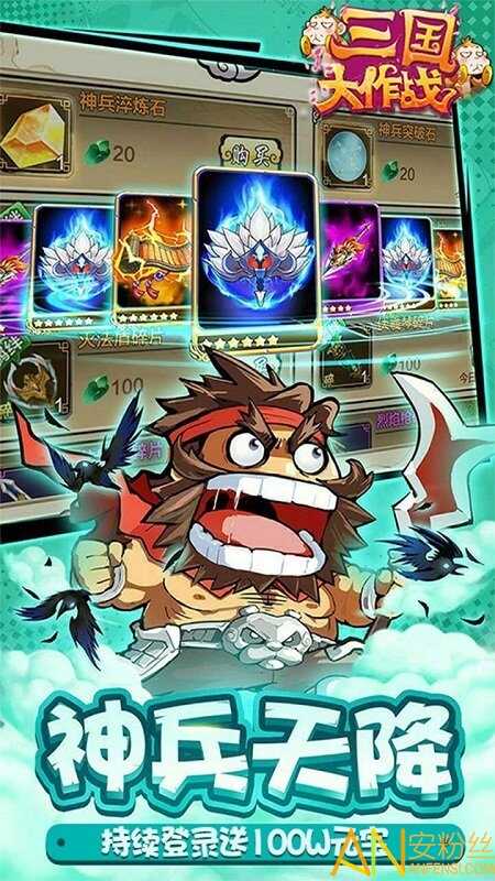三国大作战是一款真正的卡牌策略游戏!S级的美术资源,百玩不腻的游戏内容,无处不在的游戏互动,所有的顶级武将和顶级装备都能在游戏内获得,即有诙谐搞笑幽默轻松的剧情,完美还原三国乱世场景!