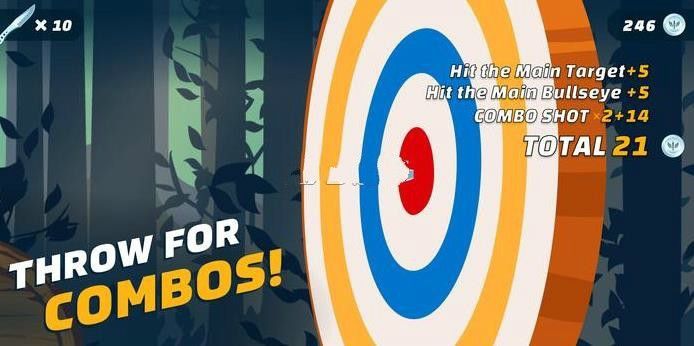 1)选择自己喜欢的飞刀到关卡中进行挑战,瞄准靶心后快速的飞掷。