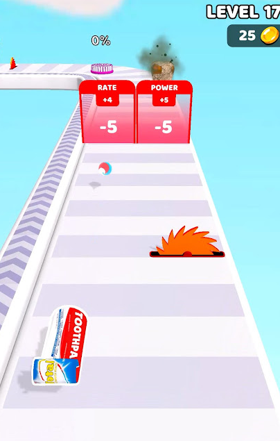 在前进的途中,不仅有旋转的齿轮,还有各种的障碍以及陷阱,有时甚至要做出门口的选择,无论是加法或者是乘法都能增加数量,一旦选择减法,就会造成数量的减少,牙膏的皮肤特别多,可以选择不同的形象进入游戏,增加玩耍的趣味性。