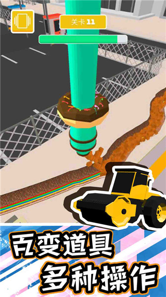 修路模拟器作为一款有趣的模拟建设手游,在游戏里面用户将成为一名优秀的修路工,你要做的就是在游戏里面修复破损的道路,在游戏里玩家需要灵活的运用各种大型的机械来进行修路工程。