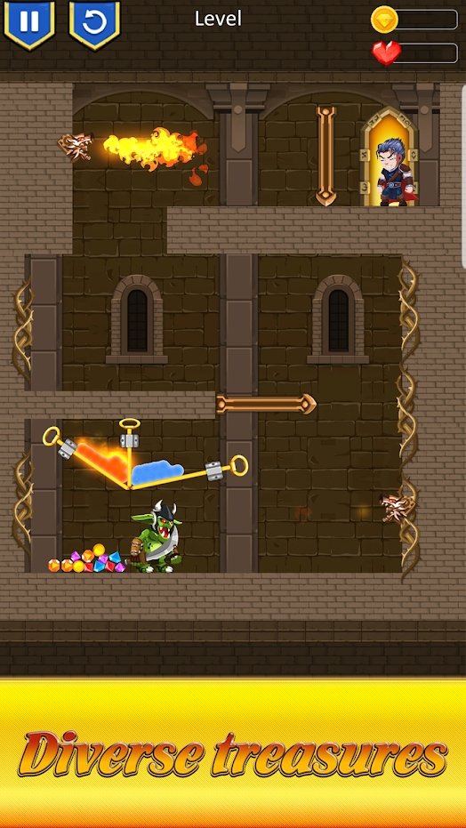 4、探索不同的场景,化身骑士拯救公主,打败每个级别中的恶魔,得到被守护的宝藏。