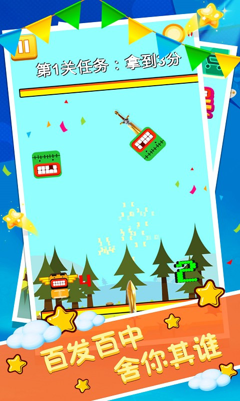 你们在这里面就是需要用飞刀来射击各种敌人们,这非常考验你们的技术能否射击它们面孔。