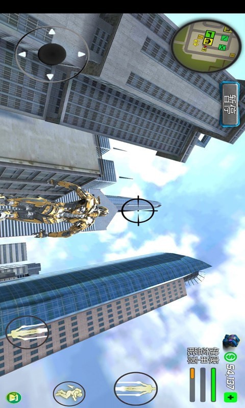 2、你可以体验类似于钢铁侠那样在城市中飞翔的感觉,并在不断的战斗中来积累自己的经验值和奖励。