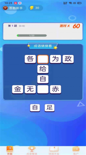 成语大作战等你加入,多种类型的成语和典故应有尽有,参与进来去挑战吧,看看凭借你的实力,你能够在这度过多少游戏难关。游戏内容丰富有趣,各种形式的关卡等你来玩,闯关过程欢乐有趣,还能收获到丰厚的奖励。
