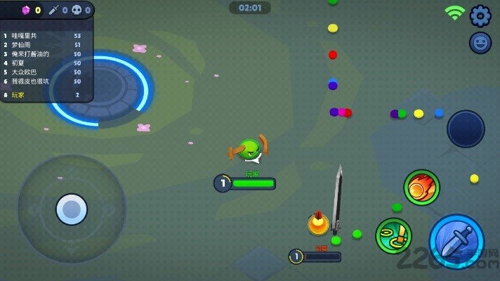 每个玩家都可以自由的选择两个技能进行装备,指尖操控走位战斗刺激无比,多人同台竞技厮杀,硬核战斗玩法考验你的操作,淘汰你的对手,在规定的时间结束时,获得小球最多的玩家将获得胜利。