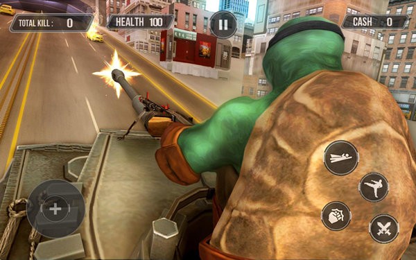 --你作为一个超级英雄忍者阴影乌龟战士需要坦克重型武装直升机轰炸,摧毁敌人和邪恶的罪犯领主的地方。