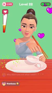吃东西的模拟类游戏,玩家在游戏中需要吃掉观众要求的食物完成挑战,成为吃播,收到人们的关注,简单有趣的吃播模拟游戏,是打发时间的不错选择,适合全年龄段玩家游玩。