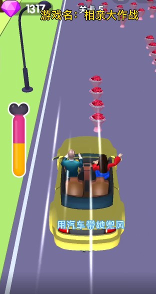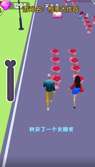 相亲大作战游戏是一款在抖音上非常火热的跑酷闯关游戏。全新的恋爱主题玩法,经典的跑酷闯关模式,玩家只需要用手指在屏幕上左右滑动就能轻松控制角色,我们的任务是要收集足够多的玫瑰花,帮助这对恋人相亲成功吧!