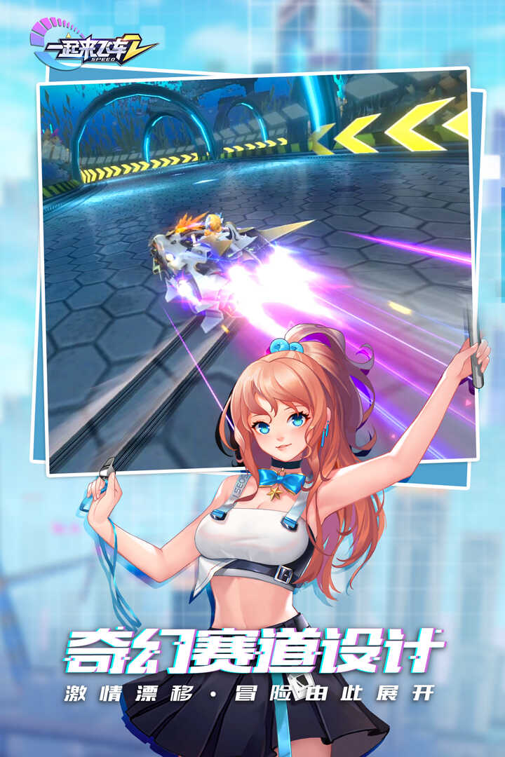 3、带着奇幻的梦想进入游戏,飞驰到各大赛道上,让极速的赛车为你冲向远方