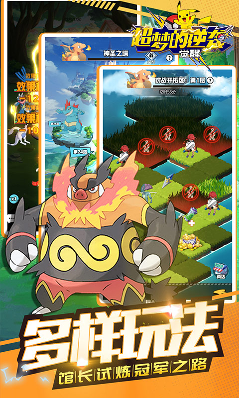 超人气手游超梦的逆袭-觉醒火爆来袭!热血对战,突破本体限制,MEGA超进化Go!馆长试炼,属性克制免疫,加入全新队形策略,全屏对决一触即发,目标宠物大师! 萌宠在线捕捉,收集属于你的图鉴,探险之路不再孤单!次日送S宠, 7天送S+宠物,一起踏上冠军之路吧!