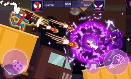 -蜘蛛火柴人可以在2个玩家游戏模式下竞争,也可以以1个玩家模式生存,和更多地图;