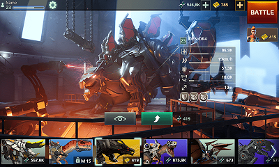 机械斗兽场手游中用户需要使用不同的武器来武装我们的恐龙,让它拥有绝对的实力,在手游的每一场战争中都取得胜利。手游对战非常刺激,感兴趣的小伙伴们快来下载试试吧。