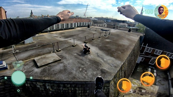 3、拟指南针控制角色的移动。各种功能的按钮可以帮助您完成各种操作。房上的跑酷会让您感到心跳加速的快感。