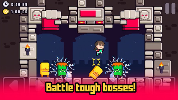 城堡伙伴游戏带你开始冒险的旅程,接下来的任务就是营救你的同伴,前往地下城堡,击败大魔王,途中你会经历种种的危险,这会很考验你的胆量, 勇气,智慧,像素风格的画面,还有经典的街机玩法,你很快就上手,保证自己的安全,躲避陷阱,抵达终点。