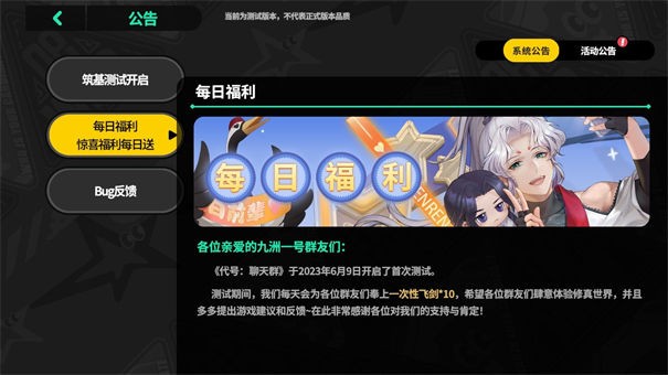 测试时间:代号聊天群于6月9日上午十点开启“筑基测试”