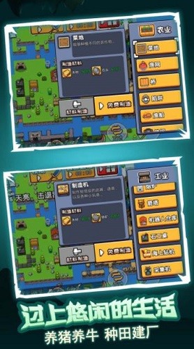 4、在岛上种植水果和其他东西,可以让你获得更多的福利,建造工厂实现工业化,养牛养羊发展畜牧业,植树种田发展农业等。