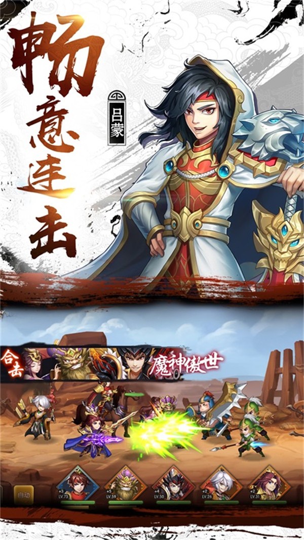 采用3D建模、唯美浪漫的画风绘制出了一个精致多彩的三国二次元世界,炫酷华丽的技能特效,酷爽的打击感,带给玩家一场美妙的视听盛宴