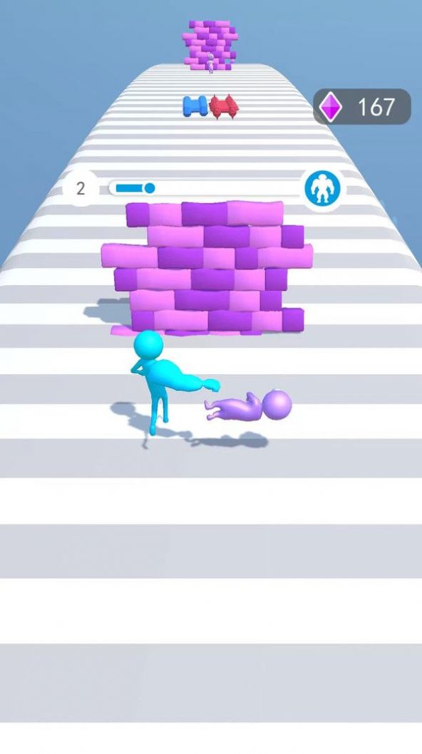 用户需要收集与自己相同颜色的哑铃才能壮大自己的臂力。