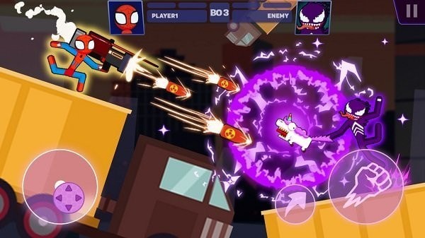 2、用户在游戏里扮演蜘蛛火柴人,利用自己的各种技术,轻松打败眼前的敌人。